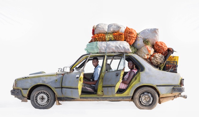 Martin Roemers presented at Kunsthal Rotterdam is a man of his time: a traveler, an observer, a photographer captivated by modern life. A truly mobile man, he has traveled around the world to capture the fascinating relationship between humans and their automobiles. The result is a remarkable collection of portraits that reveal as much about people as they do about their machines. From the shores of the North Sea to the streets of Senegal, from the avenues of Bengaluru to the highways of California, Roemers shows us how deeply inprinted the automobile has become in human identity. Each photograph is taken in front of a simple white backdrop, sometimes stretched between trees, sometimes hung from a balcony, isolating the subject(s) from the noise of their environment. Against this neutral canvas, the person(s) and the vehicle stand together, like partners in a shared story. We meet individuals by name, along with their car or motorbike, and often a glimpse of their daily activity or emotional connection to it. What emerges is a universal truth: the car is more than a means of transportation. It is an extension of the self, a symbol of independence, pride, or aspiration. Whether it is a posh Mercedes or a weathered old Peugeot patched together from spare parts, the bond between human and machine is strong. In Roemers’ large-scale photographs, we see not just cars and their owners, but a portrait of the modern world, where mobility defines identity, and where every vehicle becomes a mirror reflecting the person behind the wheel. From the person to l’umano mobile, homo mobilis.